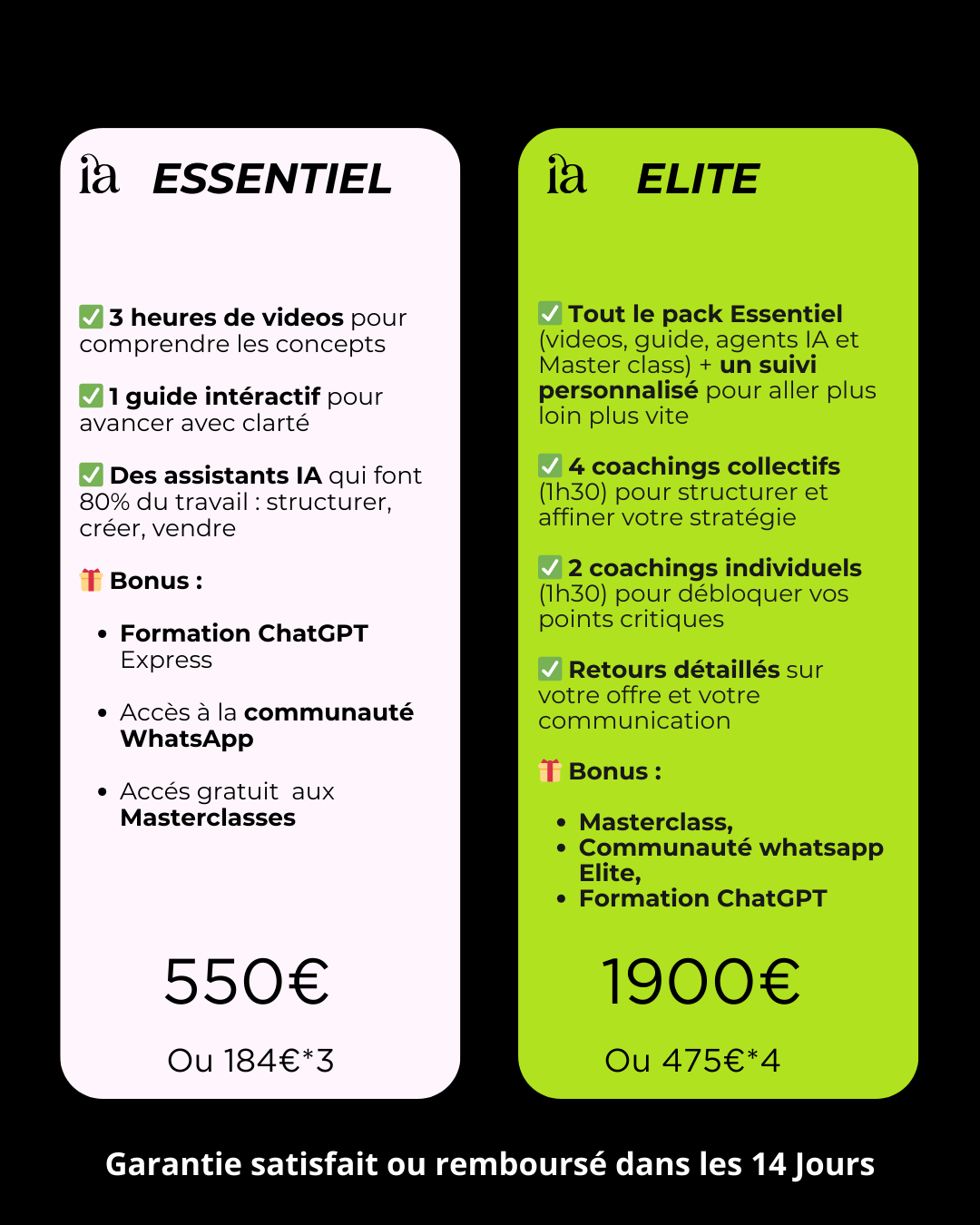 Vous avez 14 jours pour tester sereinement. Si la méthode ne vous convient pas, remboursement intégral, sans discussion.